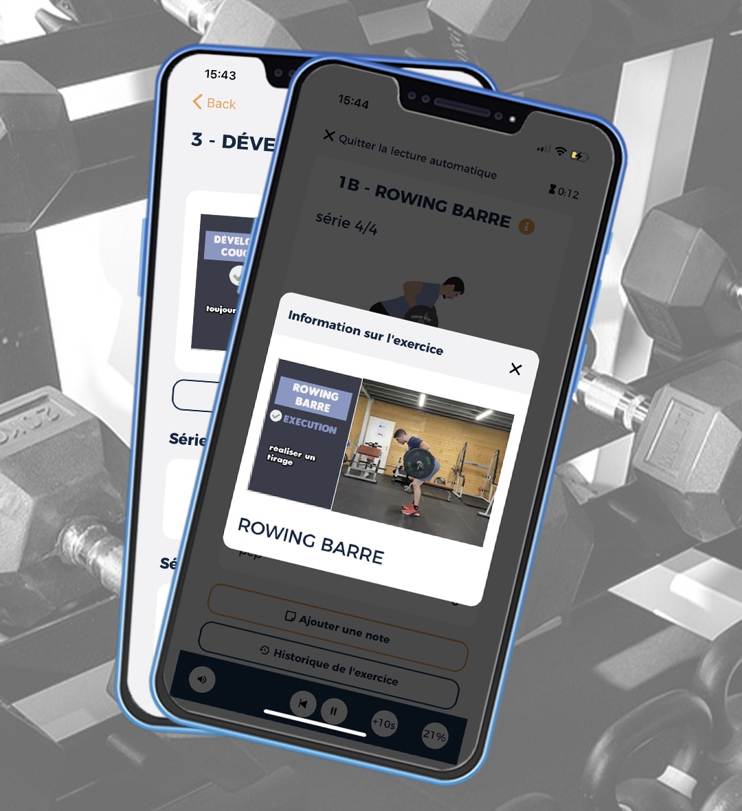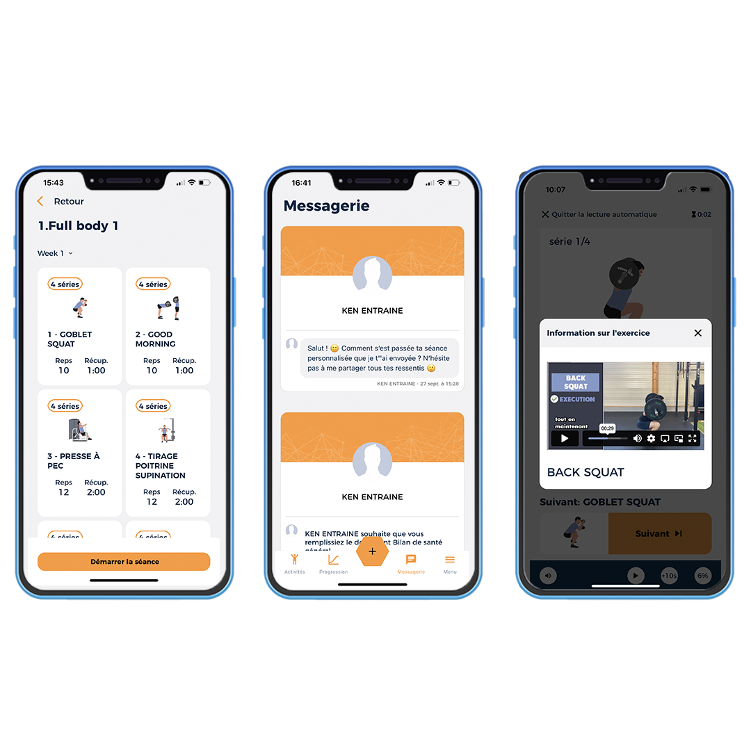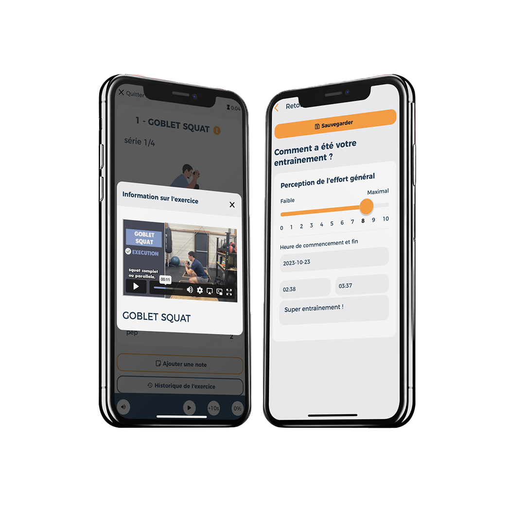 Hyper intuitive, tu peux retrouver ton programme dans une application ultra développée dans laquelle tu pourras noter toutes tes charges, tes remarques, le résultat de tes séances et avoir l'historique complet de toutes tes entrainements. Une messagerie est également intégrée.